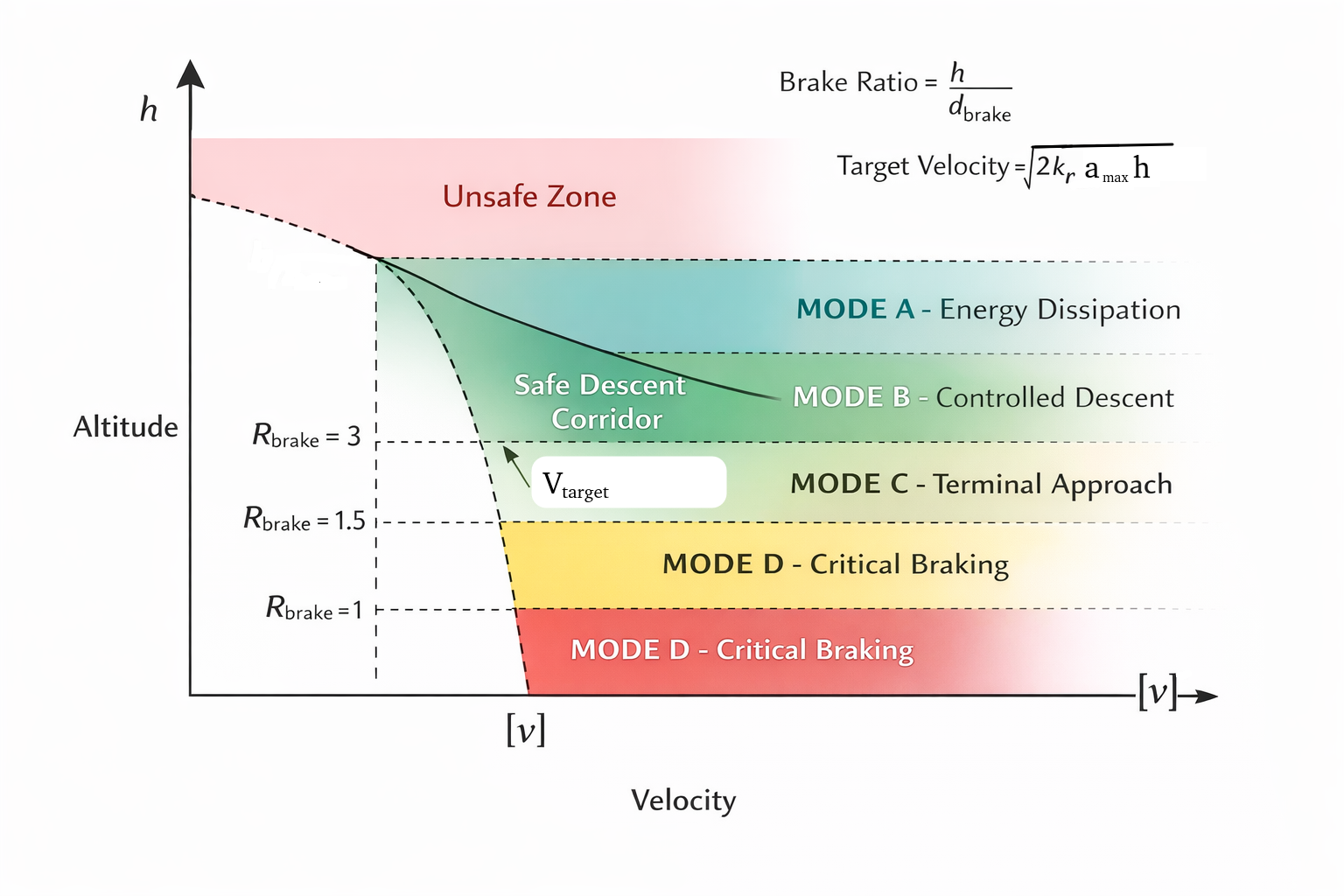 The diagram in Figure 1 visualizes the relationship between altitude and descent velocity during the landing phase.